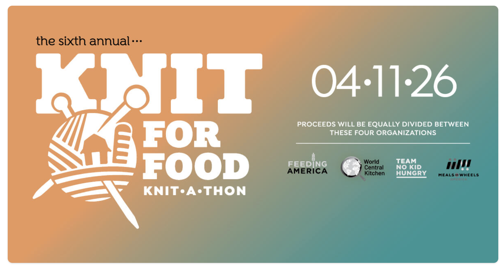 Join us for a full day of connection and stitching in support of Knit for Food, a nationwide fundraiser to help fight hunger!